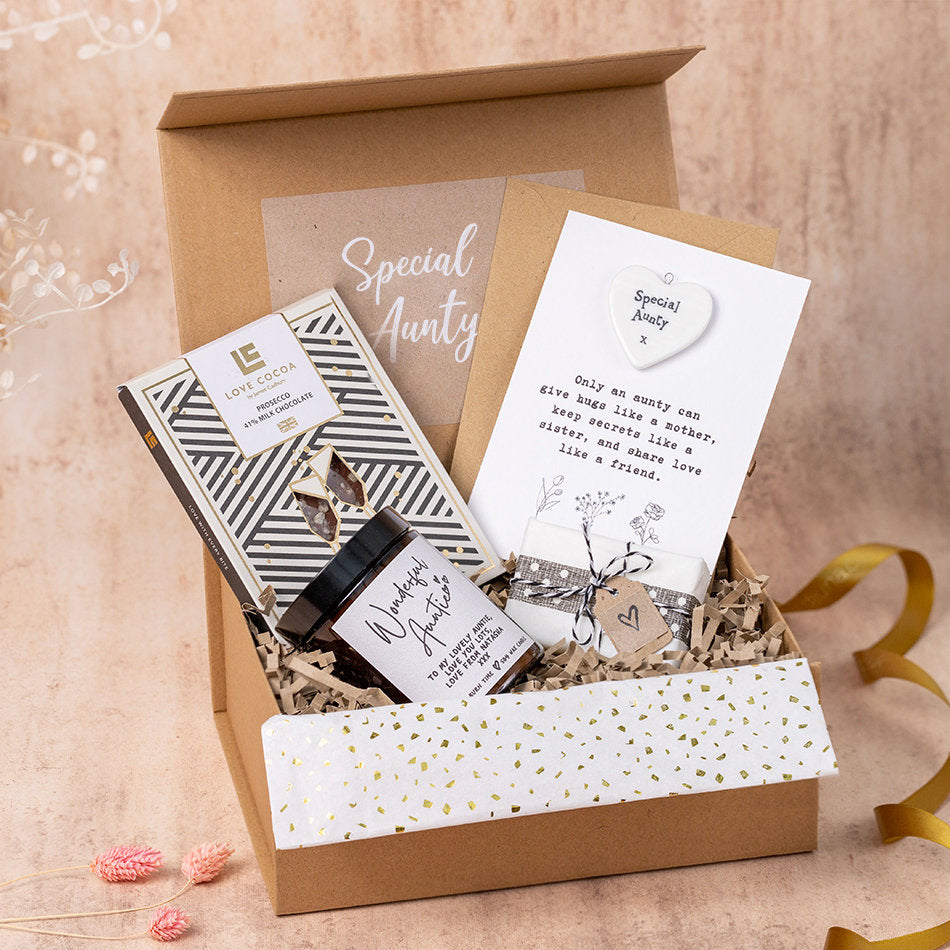 Looking for the perfect gift to show your Auntie how much she means to you? Explore our curated selection of thoughtful gifts that are sure to delight her. Whether it’s her birthday, a special occasion, or just because, we have something to make her smile. Choose from beautifully crafted jewellery, pampering spa sets, and delightful gourmet hampers. For a personal touch, opt for a customised gift that reflects her unique style and personality. Show your appreciation and love with a gift that she will cherish forever.